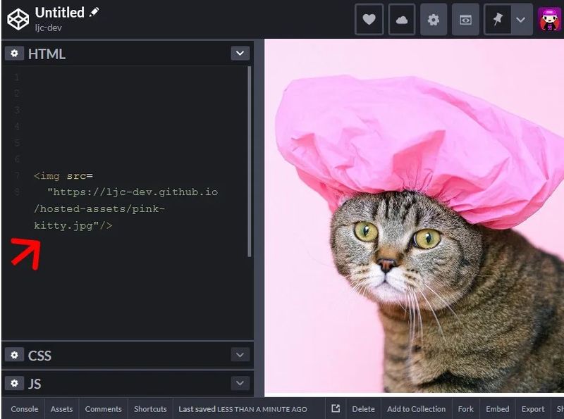 - Copy the image link and use it as the src for your image in Codepen.