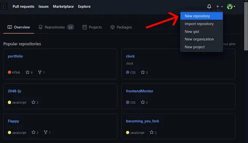 - Click on the + button (top right) then New repository